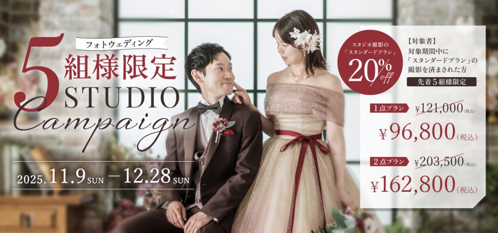 特典内容:スタジオ撮影プラン料金を20%OFFでご案内